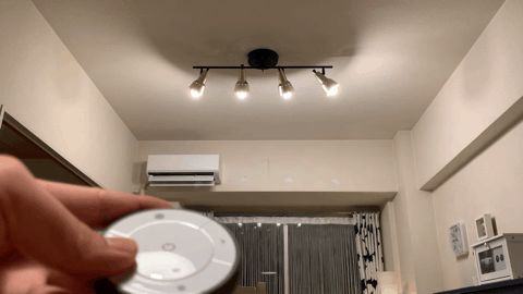 電球とは別売りの「ハブ」という機器を使ってインターネットに接続すると、スマートフォンやスマートスピーカーから操作できるようですが、追加の費用が必要になるのと、電気をつけるのにわざわざスマホを取り出すのが面倒だということで、今回はリモコンを利用することにしました。