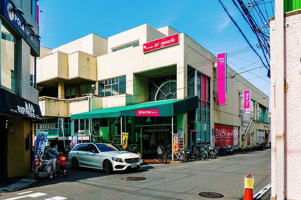 商店街を進むと、スーパーマーケットの「ゆめマート己斐」があり、食料品や日用品を買うこともできます。
