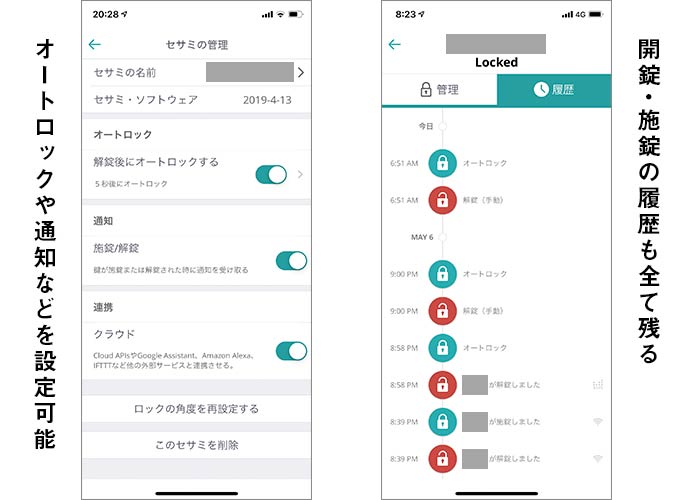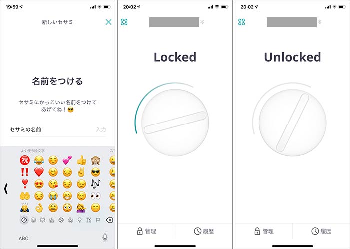 アプリの指示に従って操作を進めていくと、BluetoothでSESAMEと接続され、名前を設定したり、鍵のロック・アンロック状態の記憶などの設定を行ったりすることができるようになります。