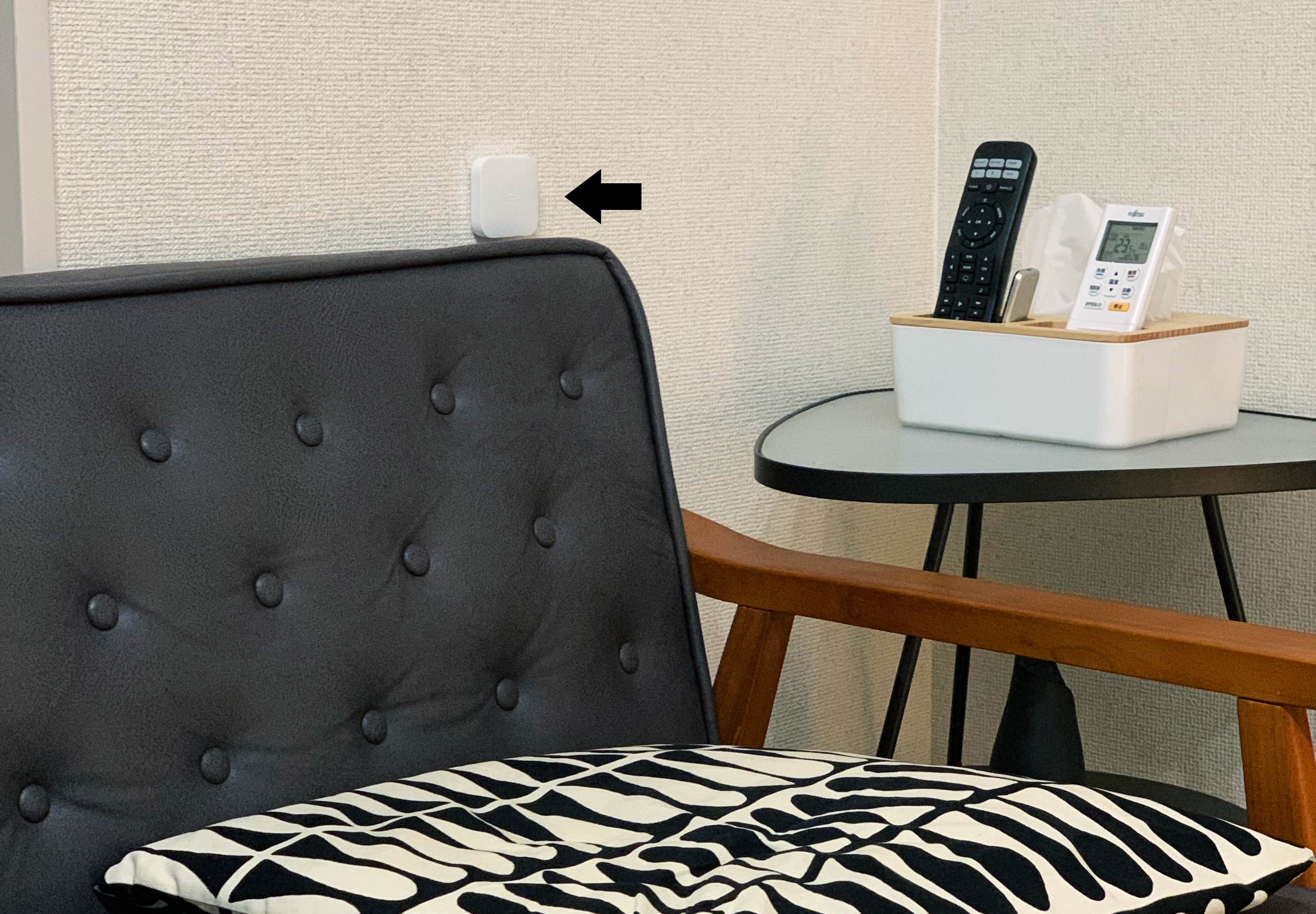 Nature Remo miniは、マット調の白色で、白系の壁紙に取り付けるとインテリアに自然に溶け込むのも良い点です。