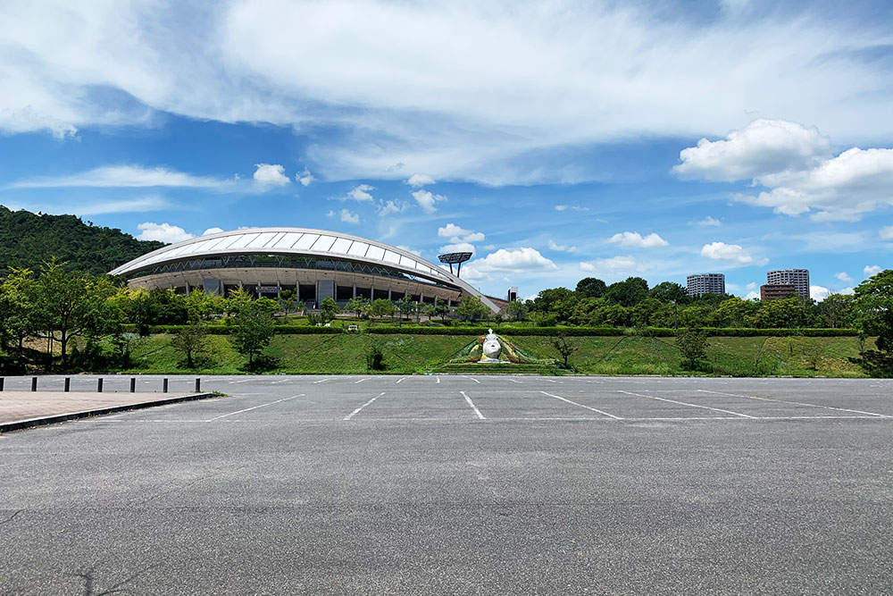 1994年に開催された広島アジア大会の主な競技場が集中する広域公園前周辺。大会のメインスタジアムは、現在は地元サッカーチームの「サンフレッチェ広島」の本拠地「エディオンスタジアム広島」として活用されています。