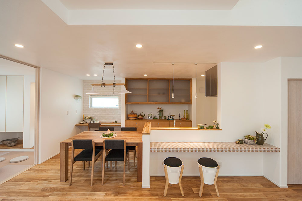 リビングの裏にはダイニング・キッチンが。効率的な生活動線が考えられています。