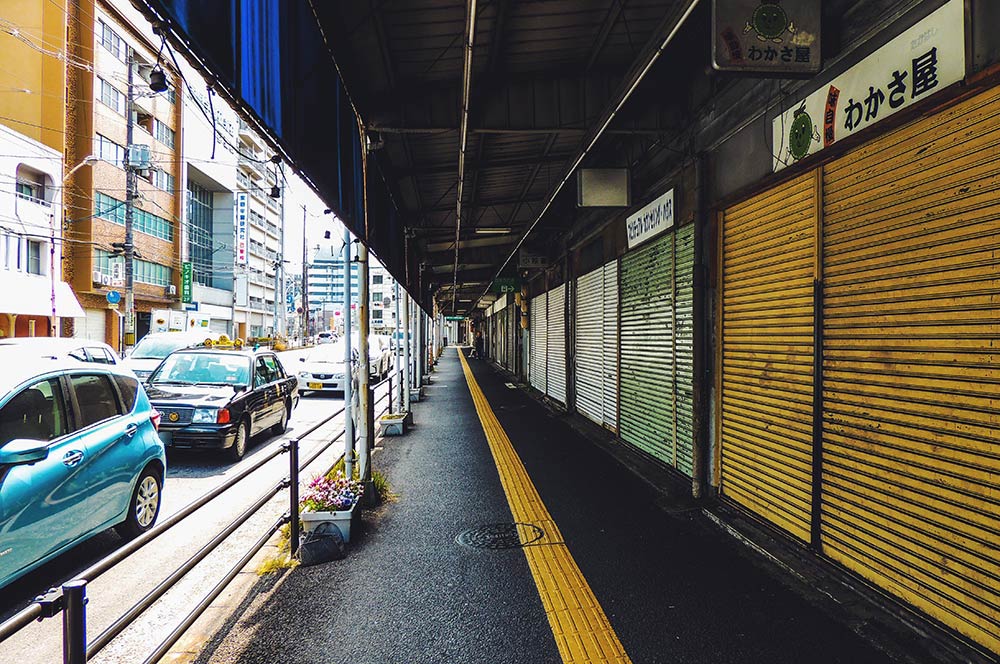 西広島駅のバスターミナルの北側には、歴史を感じさせるようなレトロな雰囲気の商店が立ち並んでいます。