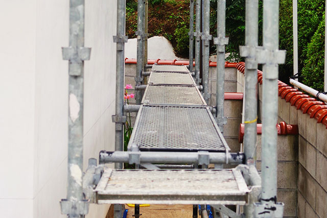 狭小地で敷地ギリギリに建てると足場が組めない