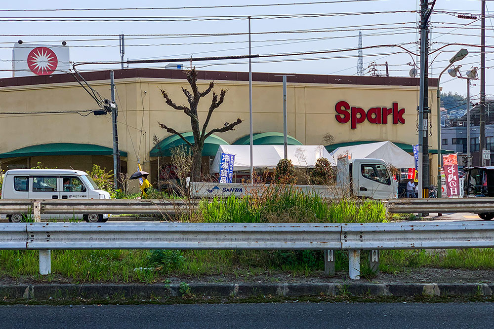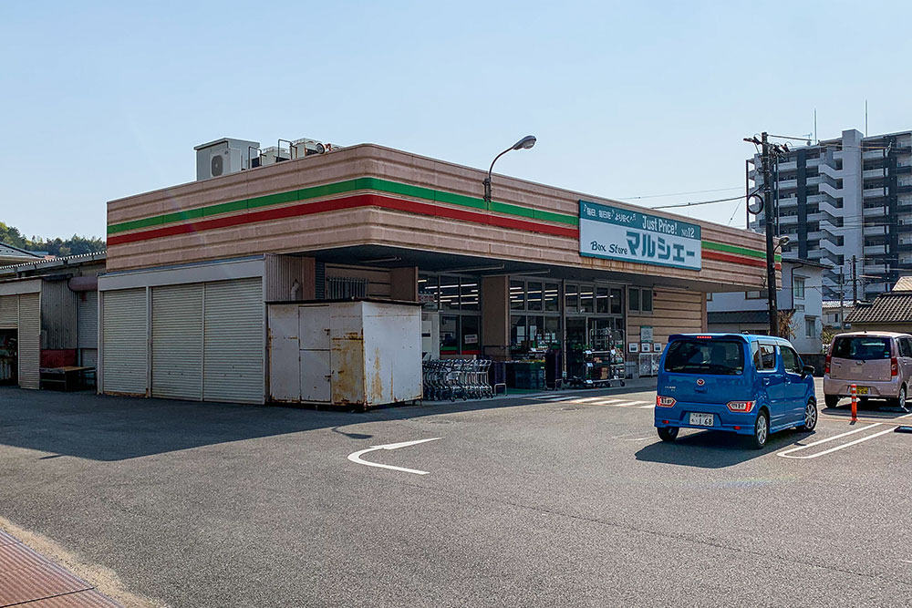 山陽新幹線のガード下の県道沿いには、「スパーク浜田店」、「マルシェー府中浜田店」があり、複数のスーパーを利用することができそうです。コンビニも、セブンイレブン、ファミリーマート、ポプラがエリア内に点在しています。
