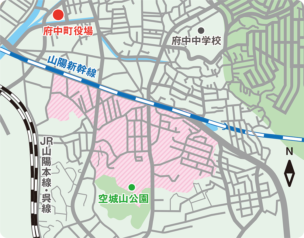 住宅街に必要なものが揃っている丘陵地「安芸郡府中町浜田・緑ヶ丘」