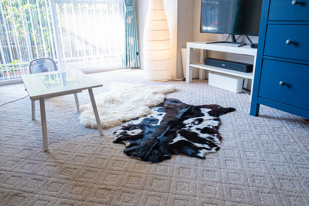 10年以上前にIKEAで購入した謎のヤギと羊のラグ。カーペットの上に敷くためお手入れが大変だそう。