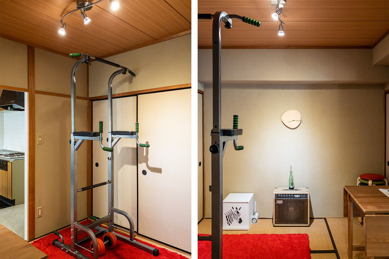 通勤をしていた頃は毎日自転車で会社まで通っていたSさん。在宅勤務によって体力が低下することを懸念し、それまで寝室の隅の狭い空間で眠りかけていた懸垂マシンを使って運動をすることに。