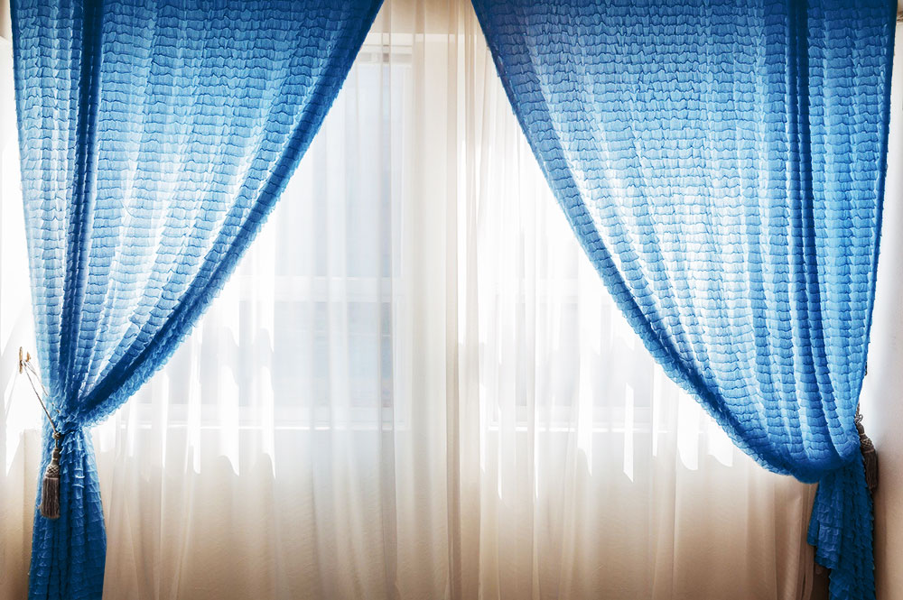 窓辺の主役・カーテンは、お部屋に対する面積が大きく、取り替えも簡単なインテリア。カーテンをブルーのものや、ブルーや白があしらわれたマリン系の涼しげなデザインのものに変えると、お部屋の体感温度をグッと下げることができるでしょう。