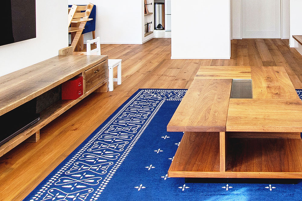 カーテンと同様、お部屋に対する面積が大きく取り替えも簡単なラグ。他の家具にもし暖色系の色があったとしても、足元の広い面積を青系統に変えることで涼しい室内を演出できることでしょう。