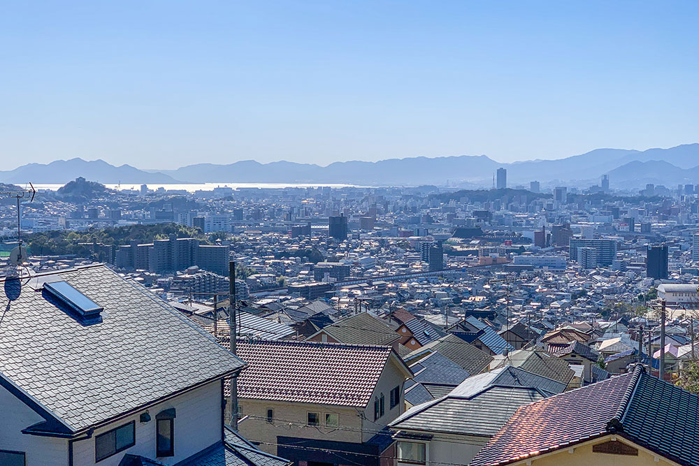 最も高い場所では150mを超える、府中町最高峰の高台・瀬戸ハイム。団地のほぼ全域から府中町や広島市の絶景を一望できます。何と標高130mの場所まで路線バスが通っており、広島市中心部、広島駅、イオンモールなどに乗り換えなしでアクセス可能。比較的新しい団地のため、府中町の他のエリアと比較しても域内の道が広く、車での生活は便利そうです。
