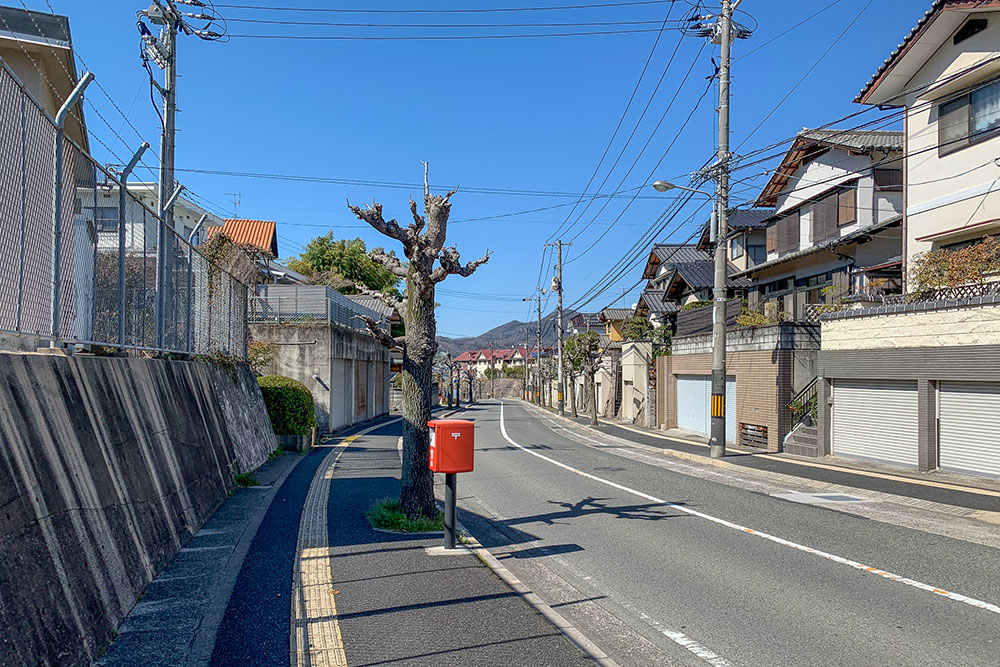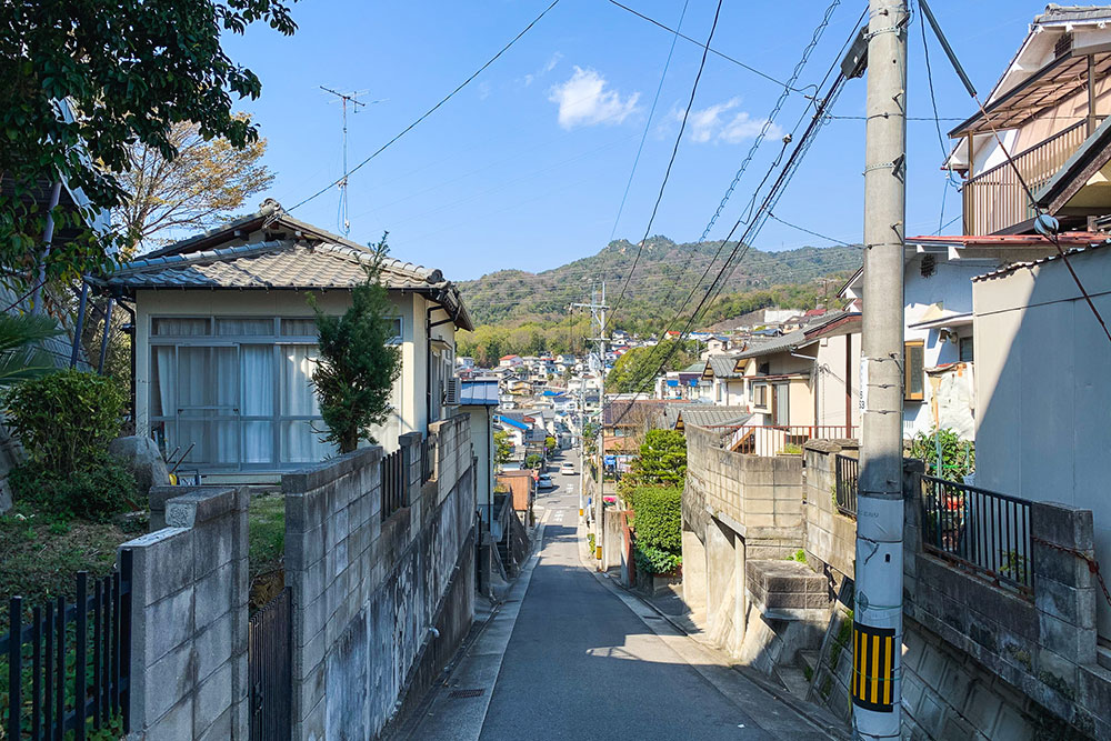 八幡の南側に位置し、南を広島市と境界を接する青崎東(あおさきひがし)の北の高台に位置する団地・柳ヶ丘。古くからの戸建て住宅が多く立ち並ぶ団地です。