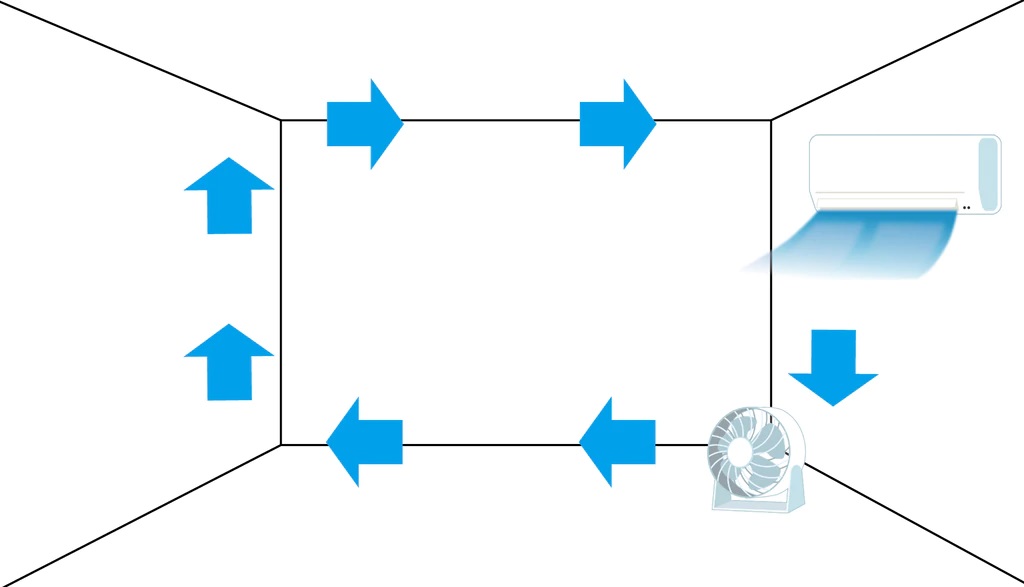 このように風を送ることで、下にたまった冷気が部屋全体に循環されて快適に過ごすことができます。
