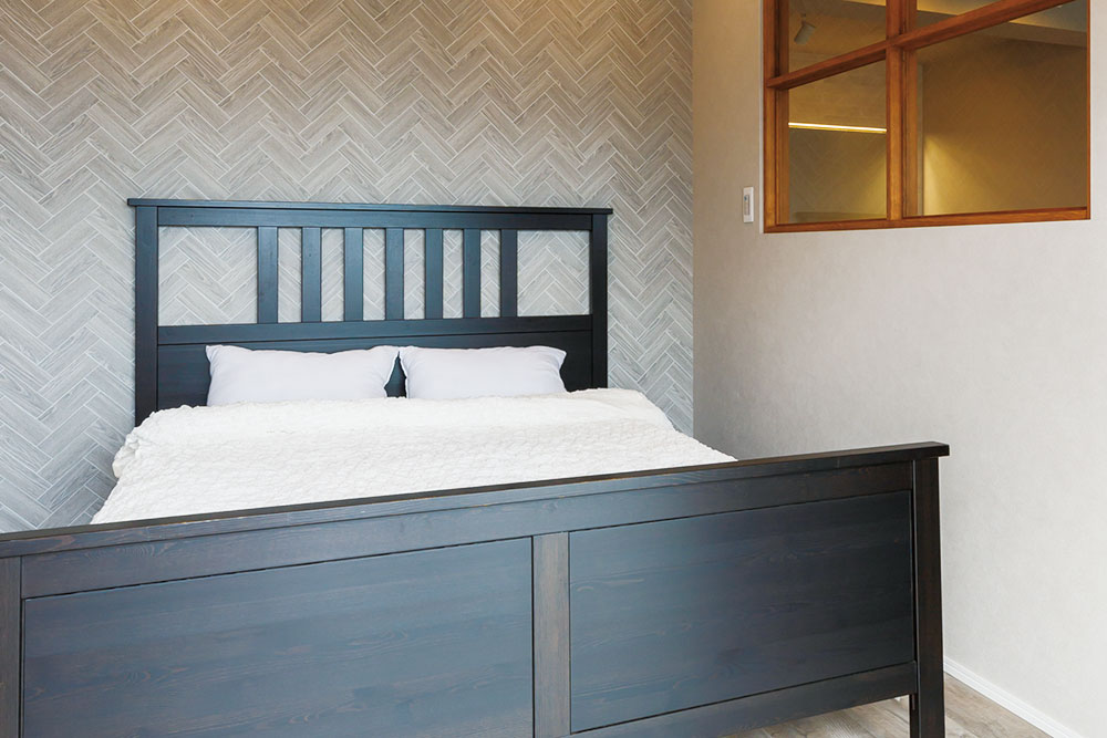 例えばベッドルームの場合、写真のような「室内を歩いている姿やシーリング照明は見えるけれど、ベッドで眠っている姿は見えない」ような絶妙な位置に開口や窓を設けることで、開放感や一体感を出しながらファミリー空間とプライベート空間をゆるやかに分けることができます。