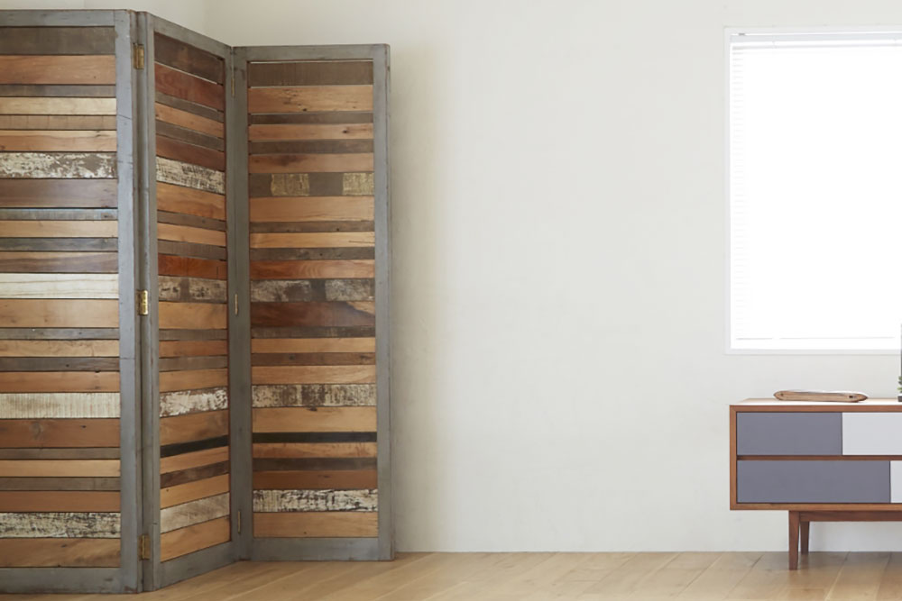 オフィスではよく真っ白な自立タイプのものが多く見られますが、住宅向けのパーテーションは折れるタイプのものやデザイン性の高いもの、有効ボードになっていてものが吊り下げられるようになっているものなどバリエーション豊か。単なる目隠しや仕切りではなくインテリアとしても取り入れられるのが嬉しいポイントです。