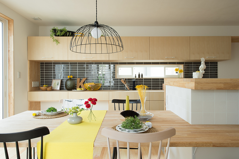 キッチンは大型家電や調理器具・食材など物がたくさんありながら、LDK空間で人目につきやすい場所でもあります。そこで活躍するのが収納棚。しかし、収納棚があるからといって物をたくさん置くとかえってごちゃごちゃした印象になってしまいます。もし、収納棚を設置する場合は、腰より下に作ることで人目にはつかずスッキリとした見た目になるので片付けが苦手な人にもおすすめの仕様です。