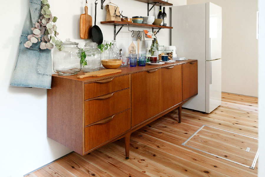 リビングの窓下に置いてその前にリビングセットを配置することで、植物やインテリア小物による演出がしやすくなります。