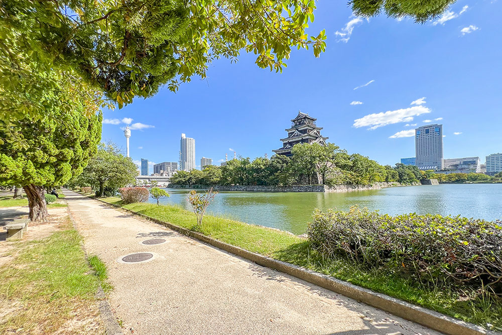 白島は東西を2本の川に挟まれたエリア。東を流れる京橋川(きょうばしがわ)と、西を流れる本川(ほんかわ・旧太田川)のほとりは豊かに緑が植えられた遊歩道があり、川辺の開放的な風景を楽しむことができるため、散歩やジョギングに打って付けの癒しスポットとなっています。