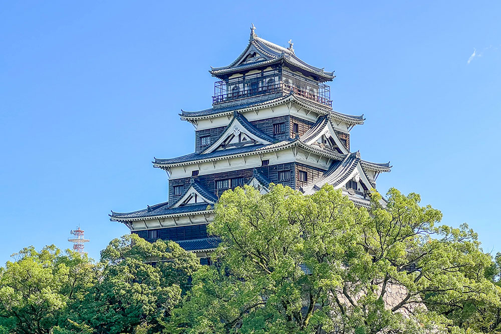新白島駅の南の「城北駅(じょうほくえき)」付近には、広島城や広島市立基町高等学校などがあります。