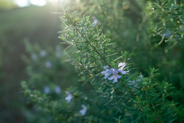 湿気を嫌い、日当たりと水はけのいい土壌を好むローズマリーは、日当たりが悪いと花つきが悪くなります。半日陰でも育ちますが、やや乾燥した場所の直射日光が当たる場所が好ましいです。ハーブの香りは乾燥しても持続します。切り取った枝をそのまま部屋に吊るすと香りに癒されますし、インテリアとしても楽しめます。