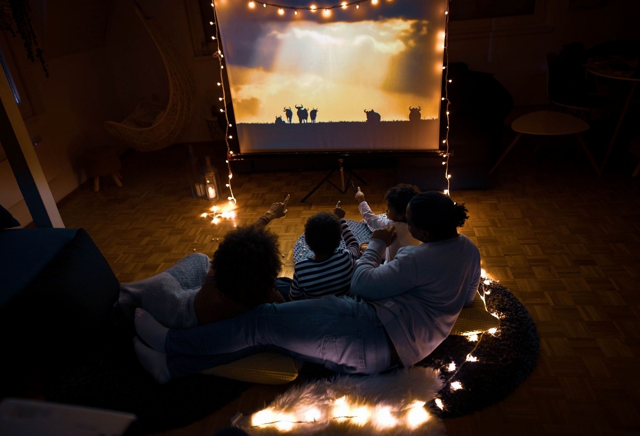 昨今、家にいる時間が増えている影響なのか、自宅で使用できるプロジェクターが低価格で販売されるようになっています。そこで1つ目のアイデアは、ちょっと大人のお家映画パーティーです。