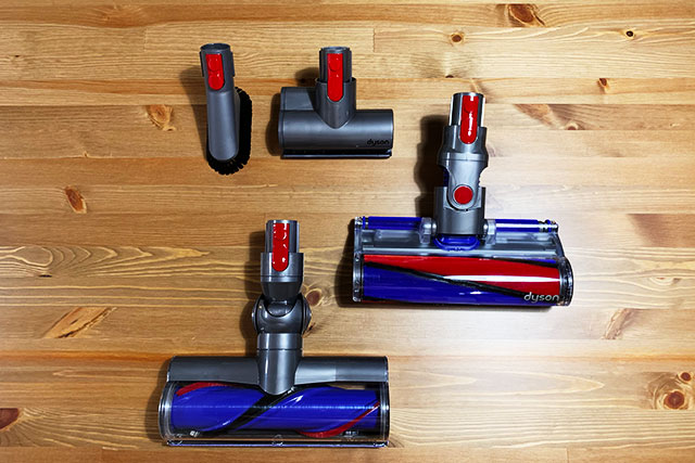モーターヘッドには3つの種類があり、フローリングの床に適した「ソフトローラークリーナーヘッド」、カーペットの床やラグなどに適した「ダイレクトドライブクリーナーヘッド」、家具などに使用できる「ミニモーターヘッド」があります。