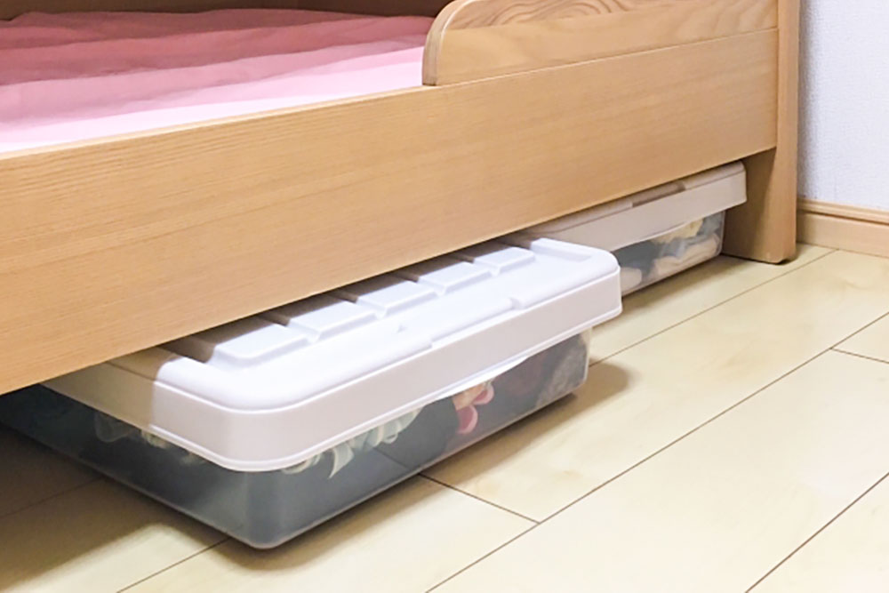 Aさんは下の空間が20cmほど空いているタイプの一般的なベッドで寝ていました。そのため、ベッド下に衣類を収納できる引き出し式の収納ケースを購入しました。ベッドの脚の位置の関係で、Aさんのベッド下には収納ケースが2つほど入ったため、その中に普段着や下着を詰め込み、ハンガーに掛かりっぱなしになっている状況を改善しました。