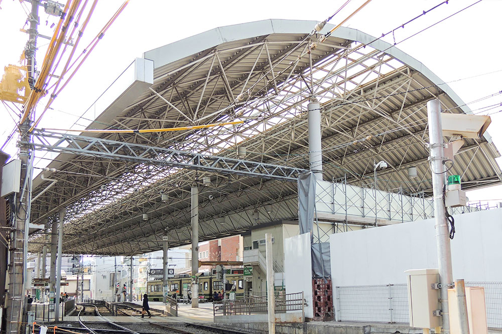 広島市西区にある広電西広島駅。この駅は、広島市中心部を走る路面電車が通常の線路を走る路線に変わる場所。この駅から終点の「広電宮島口駅」までの区間が、広島電鉄宮島線になっています。