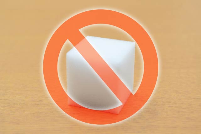 メラミンスポンジも重曹と同じように研磨作用を利用して汚れを落とす(削る)ため、ワックスやコーティングを剥がしてしまう危険性があります。