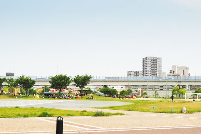 広島みなと公園ほどの広さはありませんが、広々とした緑地が広がっており、ペットの散歩やジョギングなどをする人で賑わっている人気スポットです。