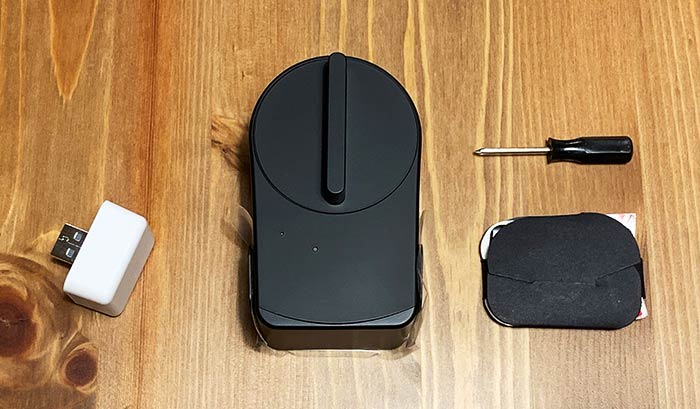 「SESAME mini」のセット内容は、本体と高さ調節用のパーツ、高さ調節用のドライバー、壁に貼り付ける用の3Mの両面テープ(2セット)と、至ってシンプルな構成になっています。