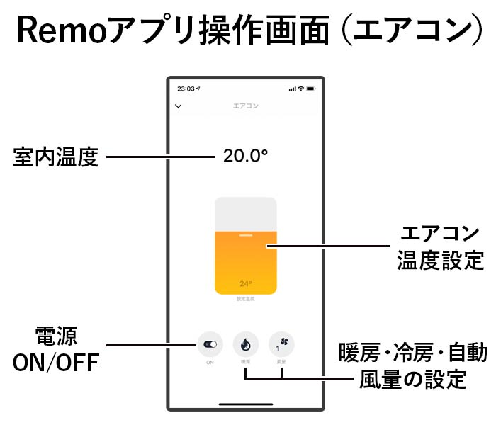 さらに、Nature Remo miniには温度計も付いているため、部屋の温度をスマホで確認することも可能です。