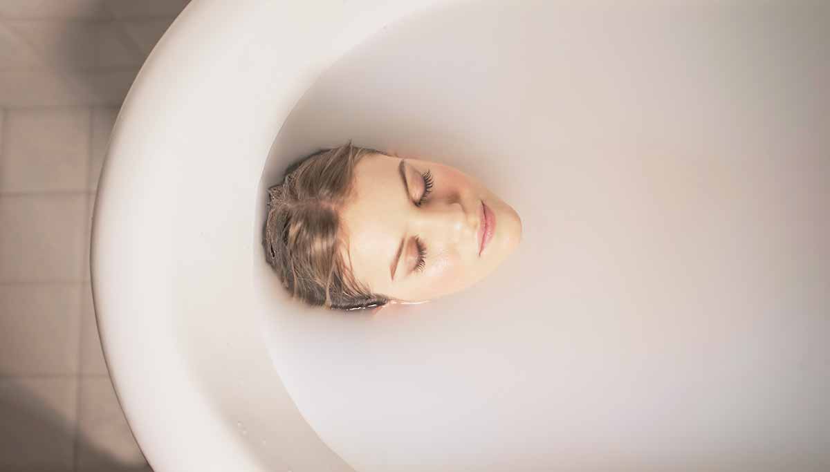 休憩を挟んだら再度バスタブに入ります。効率よく体を温めるため、必ず肩までつかるようにします。