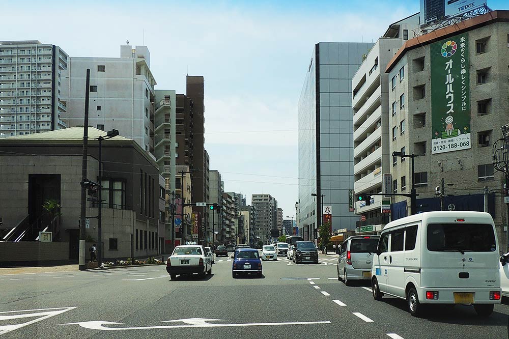 中心部に近いため、大通り沿いを中心に商店やオフィスも多い白島エリア。