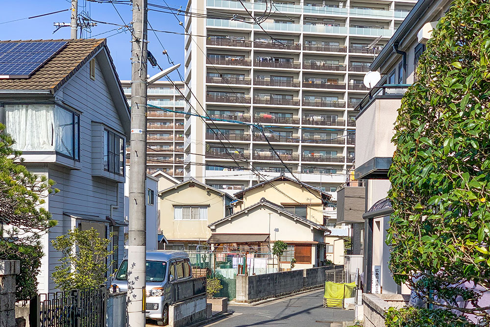 そんな府中町の町役場がある「大通り(おおどおり)」というエリアは、古くから府中町の中心地・一等地として栄えてきました。そこには、昔ながらのレトロな街並みとモダンなデザインのマンションが共存し、時の流れを感じることができる街並みが広がっています。