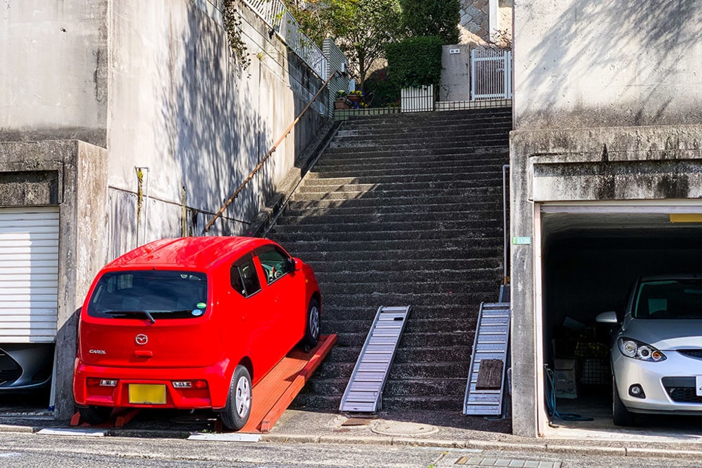 ここを過ぎると、斜面がますます急になるため、写真のように道路から家までが長い階段になっている家が多く見られます。