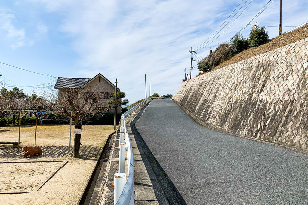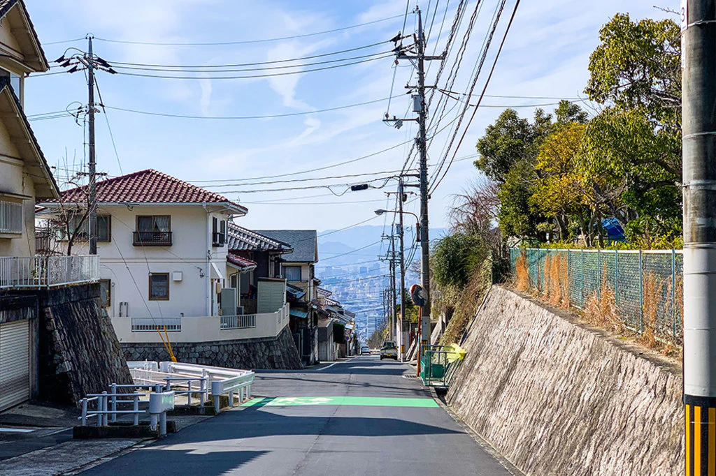 瀬戸ハイムに通じる坂道は、府中町の宮の町という場所から始まっています。ここから徐々に坂道が急になり、団地へと続いていきます。すでにかなり急な傾斜に圧倒されてしまいそうですが、根気強く登っていきましょう。
