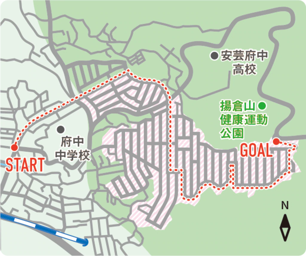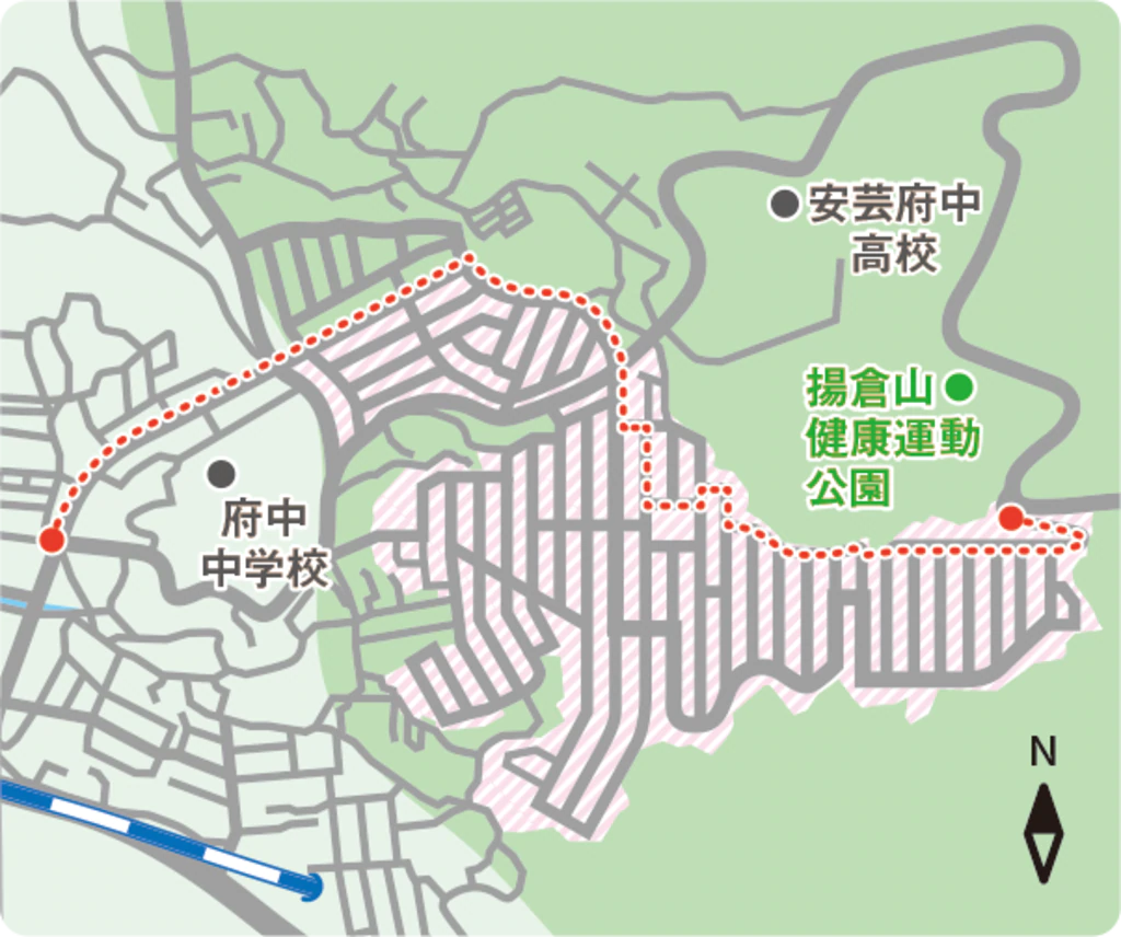 前回、前々回と、府中町の大須(おおす)エリアや大通(おおどおり)エリアといった、平地の部分を街歩きしてきましたが、今回はそこから一転、府中町で一番の高台と呼ばれる瀬戸ハイムを実際に歩き、街の雰囲気を見ていきましょう。