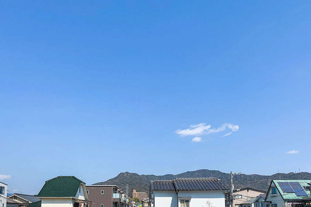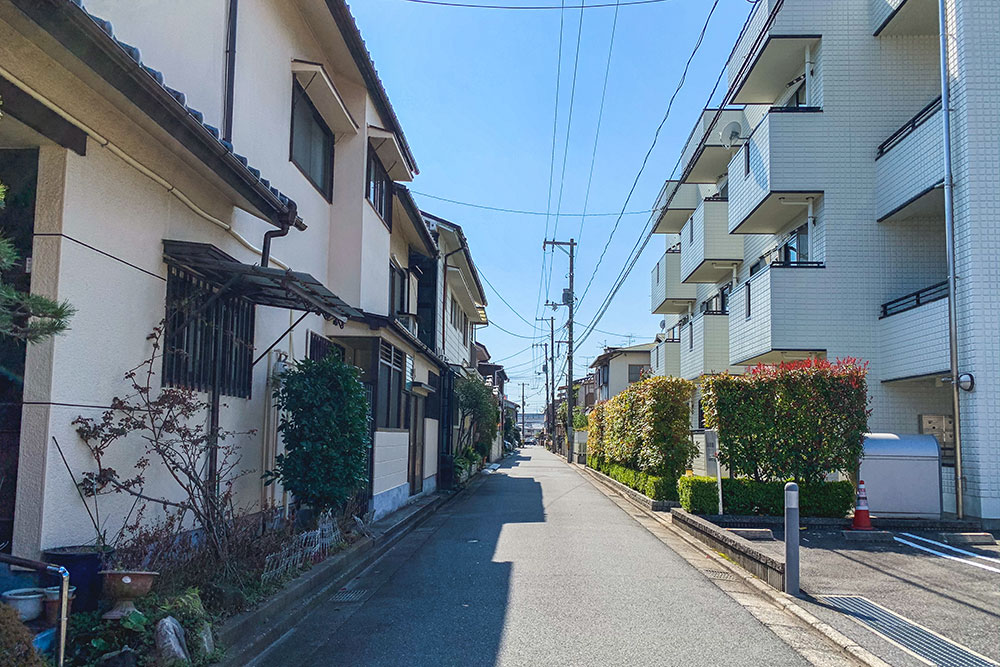 低層の住宅が中心で空が広い