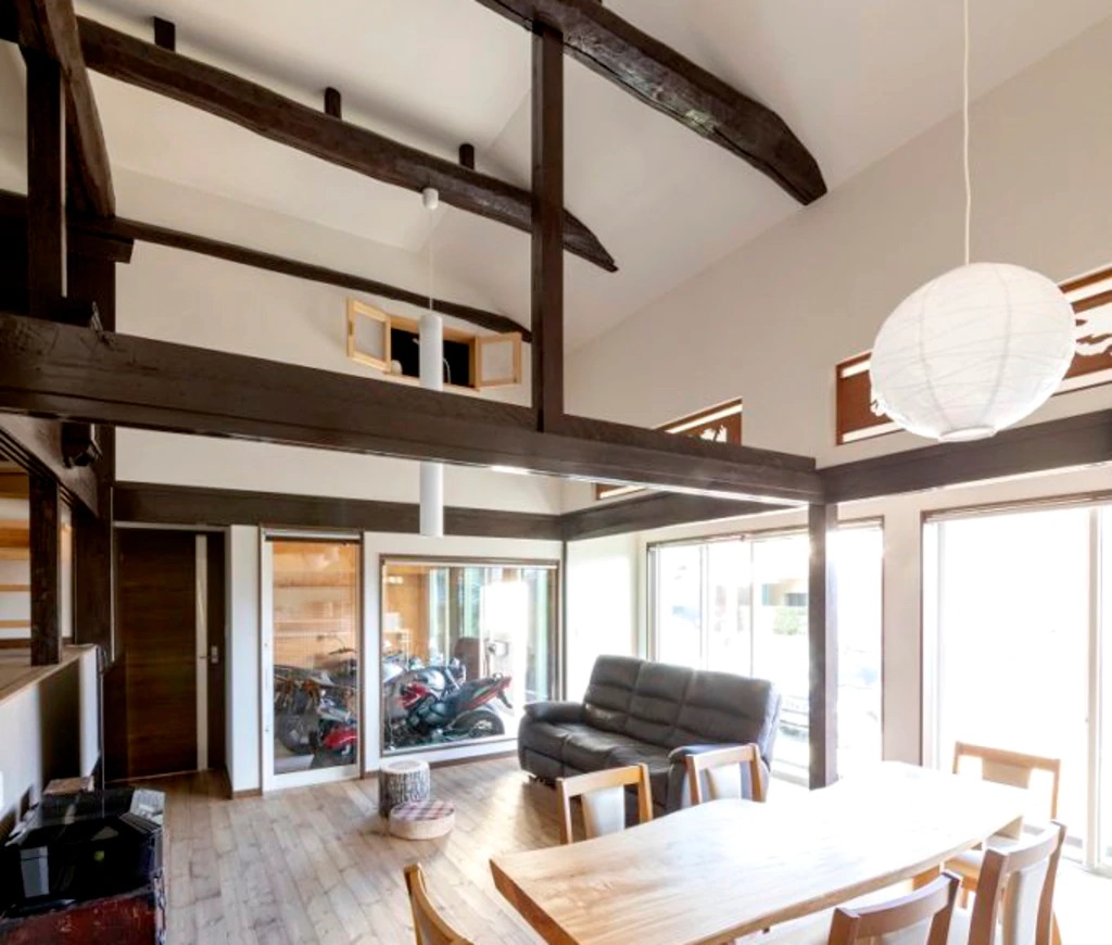 美しいだけでなく強度もある梁や柱をそのまま活かし、古民家リノベーションを行えば古民家カフェ風の立派なリビングが出来上がります。 もともと古民家は天井が高い構造となっているので、広々とした解放感ある空間が広がります。