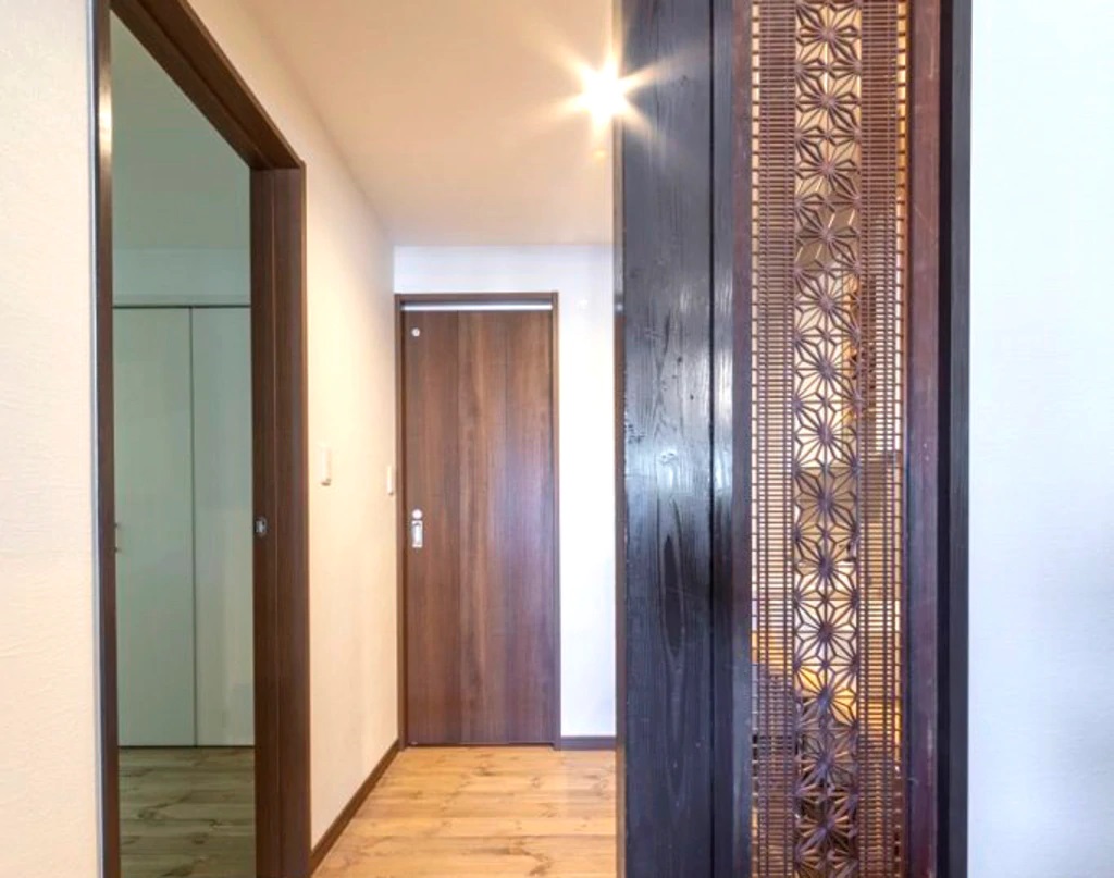 また、一つと同じものがない欄間の彫りは、デザイン性が高くインテリアとして取り入れることでおしゃれな和モダンを楽しむことができます。 照明に当たった欄間の彫りが影となり、室内にはオリジナリティあるおしゃれ空間が演出されます。