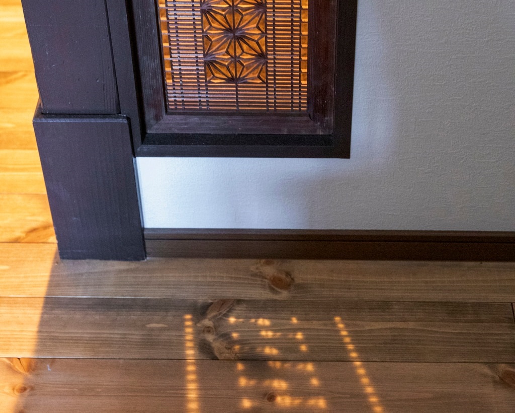 欄間(らんま)とは、古民家のような日本建築様式にみられる透かし彫りが施された建具の一種です。通風や採光の役割をしてくれるので、 室内に気持ちのいい季節の風や光を届けてくれます。
