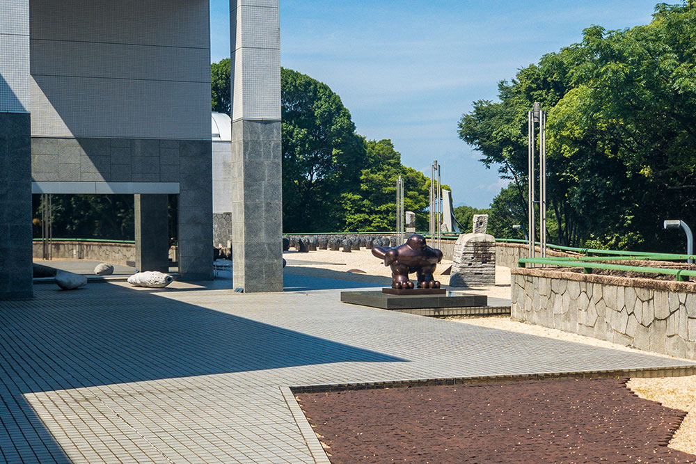 街の中心部にある他の2つの美術館とは異なり、比治山の上にある広島市現代美術館。森の中に野外彫刻がたくさん設置されているような、アートと自然が共存している光景を楽しめるのは、この美術館ならではの特徴と言えます。