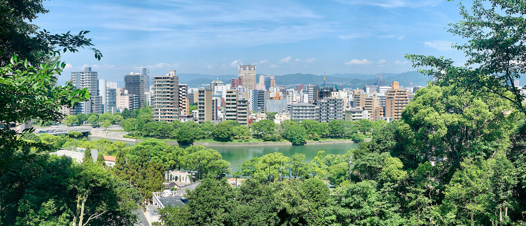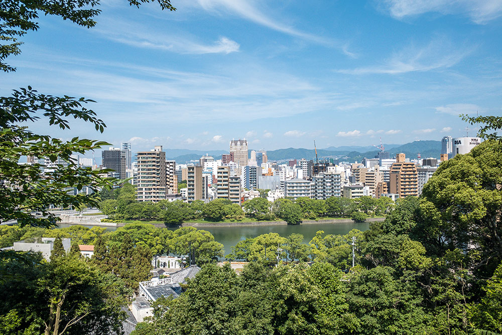 広島市南区にある「比治山(ひじやま)」。森が残る小高い山ですが、山全体が公園になっており、見晴らしの良い場所から見える広島の街の風景を楽しむことができます。
