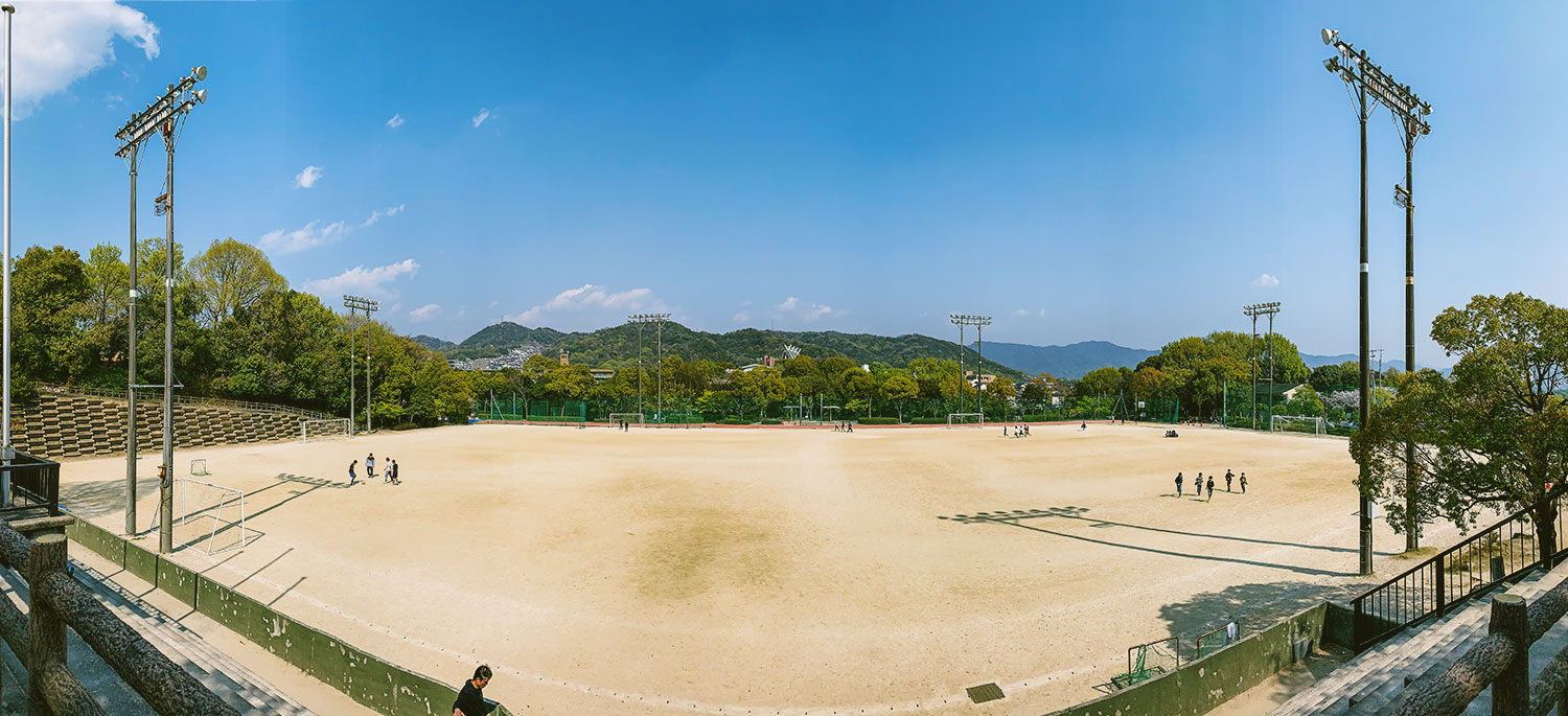 エリアの南にある、大型遊具やナイター設備の付いている大型公園「空城山(そらじょうやま)公園」。休日には府中町内外から多くの家族連れが訪れ、賑わいを見せています。