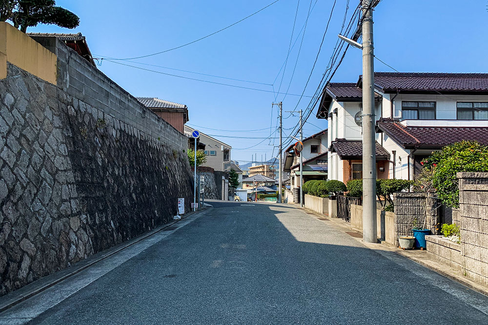 西側が平地の本町、大通(おおどおり)と境界を接している宮の町。平地エリアとの境界付近は平らな地形で、本町や大通のスーパーマーケットや、大須(おおす)のイオンモール広島府中へも徒歩や自転車でアクセス可能です。