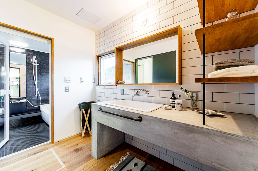 生活動線が便利になる例として多く挙げられるのが、浴室、洗面室、洗濯機置き場、キッチンなどが隣り合っていること。家事を行なう人がスムーズに移動できるので時短となります。