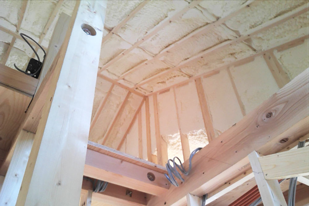 また、断熱材をはめ込むのではなく、発砲ウレタンの断熱材を木材に吹き付けることで、気密性も同時に引き上げるという施工を行っている会社もあります。この施工を行うと、吹き付けられた発泡ウレタンが木材に半永久的に自己接着するため、木材が将来的に収縮しても隙間が生まれにくく、長期間断熱性能を維持できるようになっています。