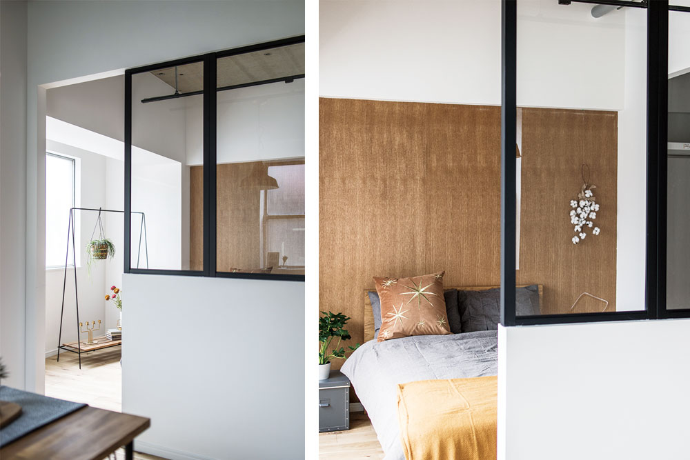壁を作らない代わりに、天井にカーテンやブラインドを取り付け、ベッドスペースなどを隠すこともできます。プライバシーが必要ない時はカーテンやブラインドを開けることで、開放感あふれるお部屋になることでしょう。