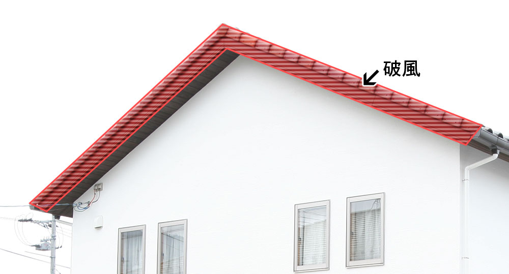 破風は屋根の妻側の端の部分を指します(図を参照)。そこに取り付けられている板を破風板と言います。